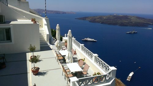 聖托里尼的第二天,丁老昌和莉莉安起了個大早,準備到街上MAMA's 吃早餐 ... ... 伸個長長的懶腰再揉揉眼睛,從房間的窗戶看出去~~哇,早晨的愛琴海一樣非常迷人呢~~!!